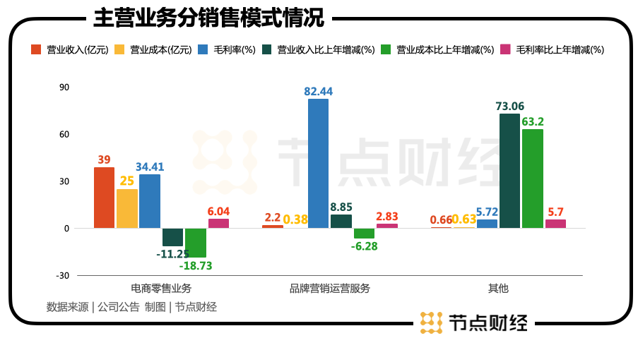 一面是销售模式的战略进化。推进代理品牌从电商零售业务模式转变为品牌营销服务模式。品牌营销运营服务模式的毛利率82.44%显著的高于电商零售业务模式34.41%的毛利率,是一种更好的商业模式,销售模式更多向品牌营销服务倾斜对丽人丽妆整体发展大有益处。