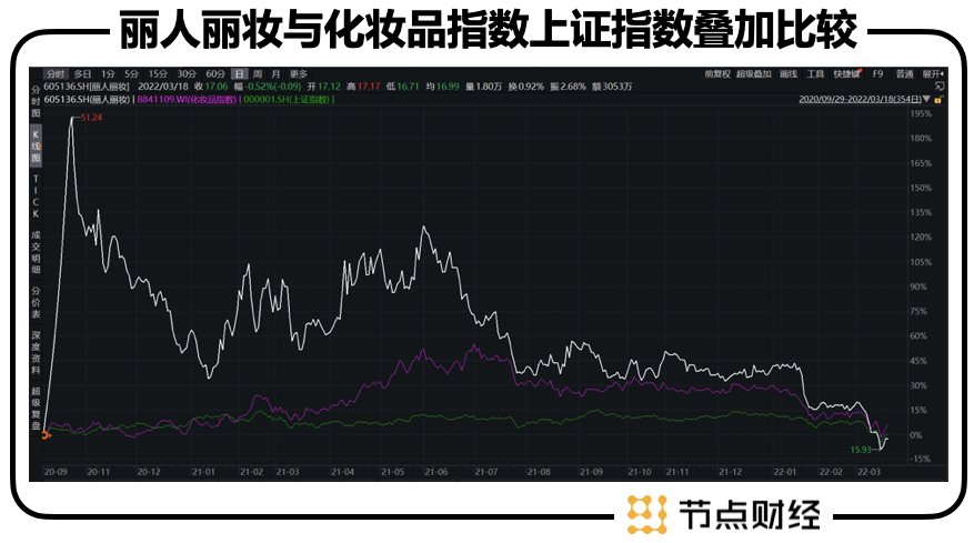 如果说当初的高光是带着炒作意味的情绪化潮起,那之后的低迷只是情绪消散之后的潮落吗?丽人丽妆的业绩决定了它似乎不该是一只靠情绪和惯性活着的股票,它的市值同业绩究竟在较量着什么?