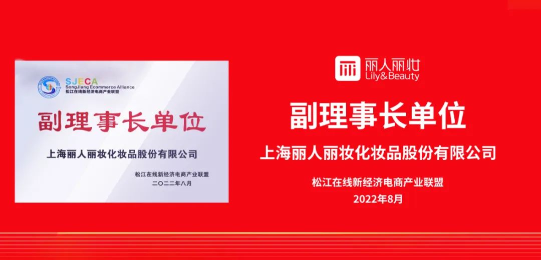 2022年8月30日,上海市松江区市级直播基地授牌暨松江在线新经济电商产业联盟成立仪式顺利举行,同时活动现场公布了产业联盟首届理事会单位名单,丽人丽妆被推选为产业联盟第一届理事会副理事长单位。