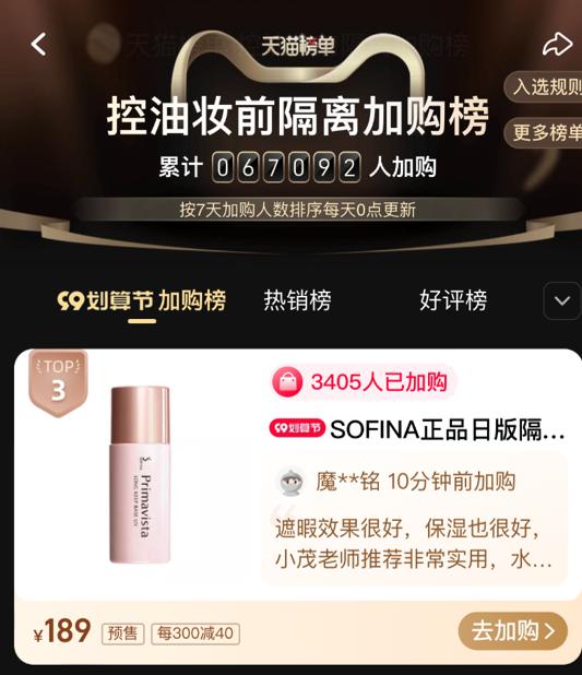 丽人丽妆部分合作品牌荣登天猫99划算节加购榜单