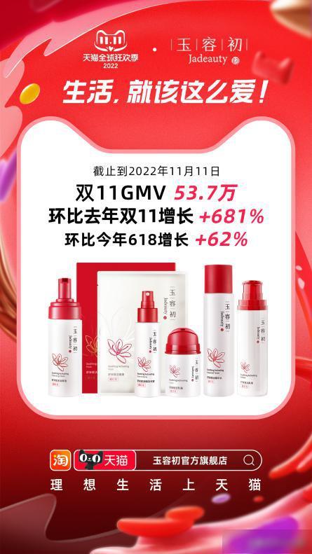 2022年天猫双11活动已正式结束,丽人丽妆自主孵化品牌玉容初在今年双11活动开始10分钟销量超去年双11总销量,活动首日销量超同年618总销量;双11总成交额超53万元,环比去年双11增长681%,环比今年618增长62%。玉容初官方旗舰店荣登淘宝群·美妆护肤彩妆类目成交占比TOP榜单。
