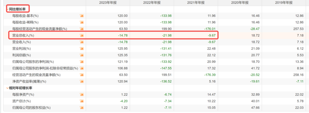2020年-2023年,公司营收分别为46亿元、41.55亿元、32.42亿元、27.62亿元,2021年-2023年同比增幅分别为-9.67%、-21.98%、-14.78%。