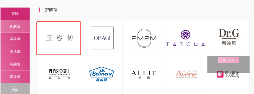 在丽人丽妆官网,旗舰店入口板块排在第一位的,就是其自有美妆品牌“玉容初”。