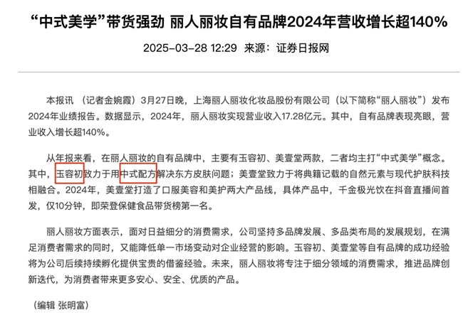 再看一下公司的公关稿,我们可以看到,出现了一些变化:玉容初的宣传上,加上了“中式配方”这个四个词。而美壹堂虽然保留了“典籍记载”这个关键词,但是最关键的落地抓手“中式组方”,这个关键词却消失了。