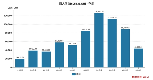 无论是*金额,还是相对金额,丽人丽妆的库存压力都很大。