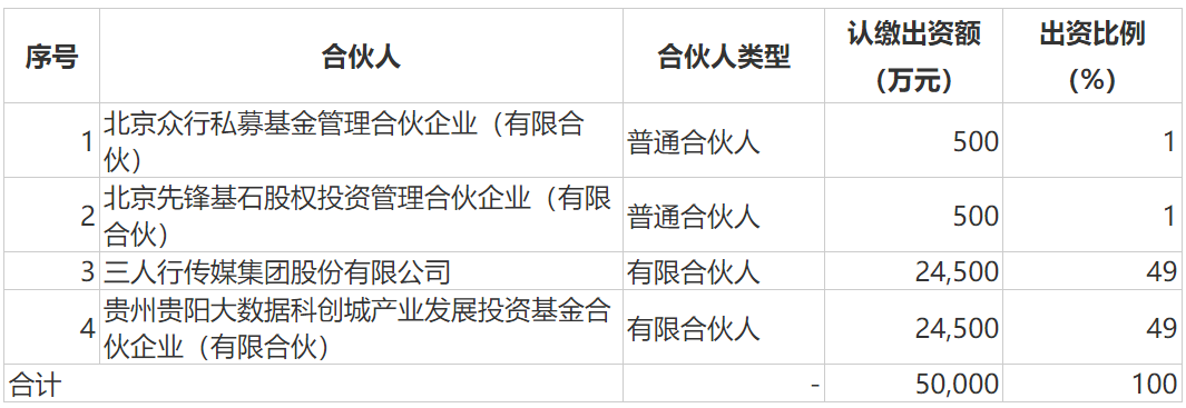 在本只总规模5亿元的基金中,三人行(2.45亿元)及贵阳科创城产业基金(2.45亿元)均扮演了LP角色,但在双GP结构中,北京众行(500万)为三人行全资基金管理机构,显示出“跟投阶段”已经结束,创投业务在三人行的布局中将获得更为重要的地位。