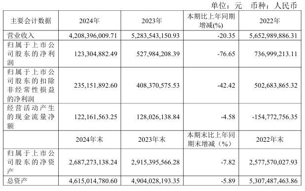 2024年,三人行营收42.08亿元,同比再降20.35%,较2022年峰值缩水25.6%。归母净利润1.23亿元,同比暴跌76.65%,仅为三年前的1/6。