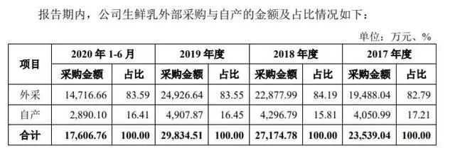 另一厢,招股书显示,公司生鲜乳原材料系由子公司泰顺一鸣、常州鸣源及合作奶源供应商所提供,截至 2022年 12 月末,公司自有牧场总计 3523 头牛,其中成母牛共计 1306 头。但2020年中报也透露,一鸣自有奶源不足,外购生鲜乳占比超80%。而2022年财报并未公布相关数据。