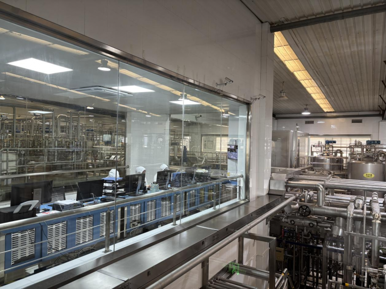 当然,奶类产品是一鸣食品平阳工厂的主打产品,其两个乳制品处理车间最多每天可处理鲜奶400吨。每天下午,来自泰顺、丽水、金华等地的鲜奶陆续运抵工厂,经检测合格后,被送进两个乳制品预处理车间,存储在不同类别的大型不锈钢密封罐中,等待工厂排产。“春节期间,学校放假了,我们工厂的日处理鲜奶量比日常略有减少,每天基本上还达到近200吨。”诸瑞纳透露,自有牧场和合作奶农的奶牛每天都要产奶,像春节这样的节假日其工厂也不能停工休息。