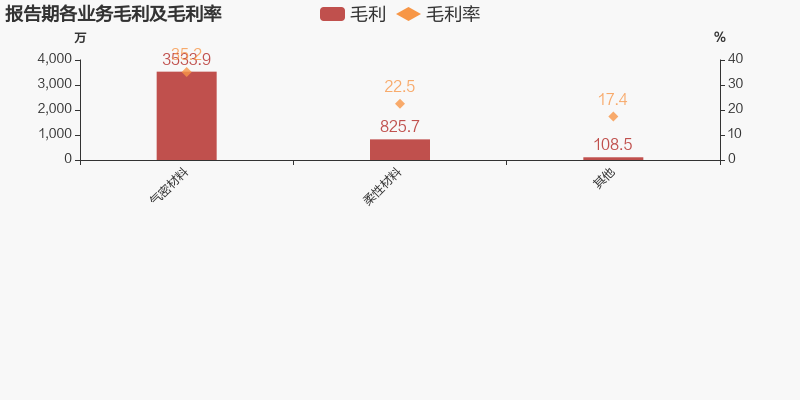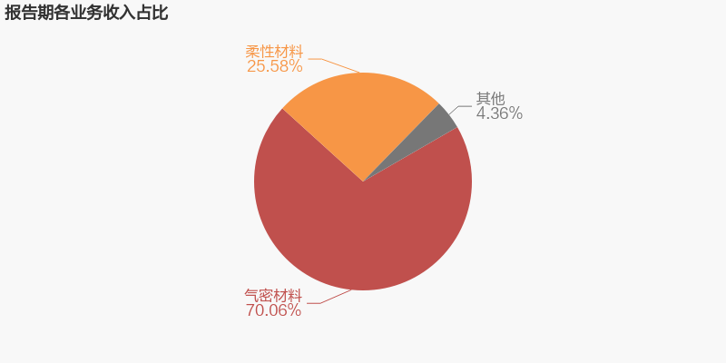 从业务结构来看,“气密材料”是企业营业收入的主要来源。具体而言,“气密材料”营业收入为1亿元,营收占比为70.1%,毛利率为35.2%。