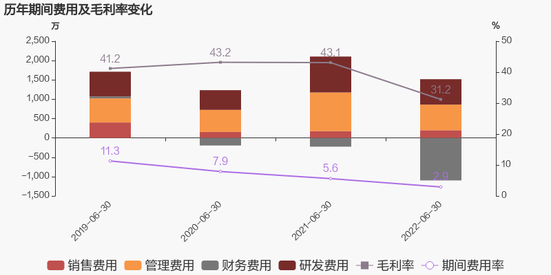 公司2022半年度营业成本9856万元,同比下降48.2%,低于营业收入57.2%的下降速度,毛利率下降11.9%。期间费用率为2.9%,较去年下降2.7%。经营性现金流大幅上升1316.2%至5882万元。
