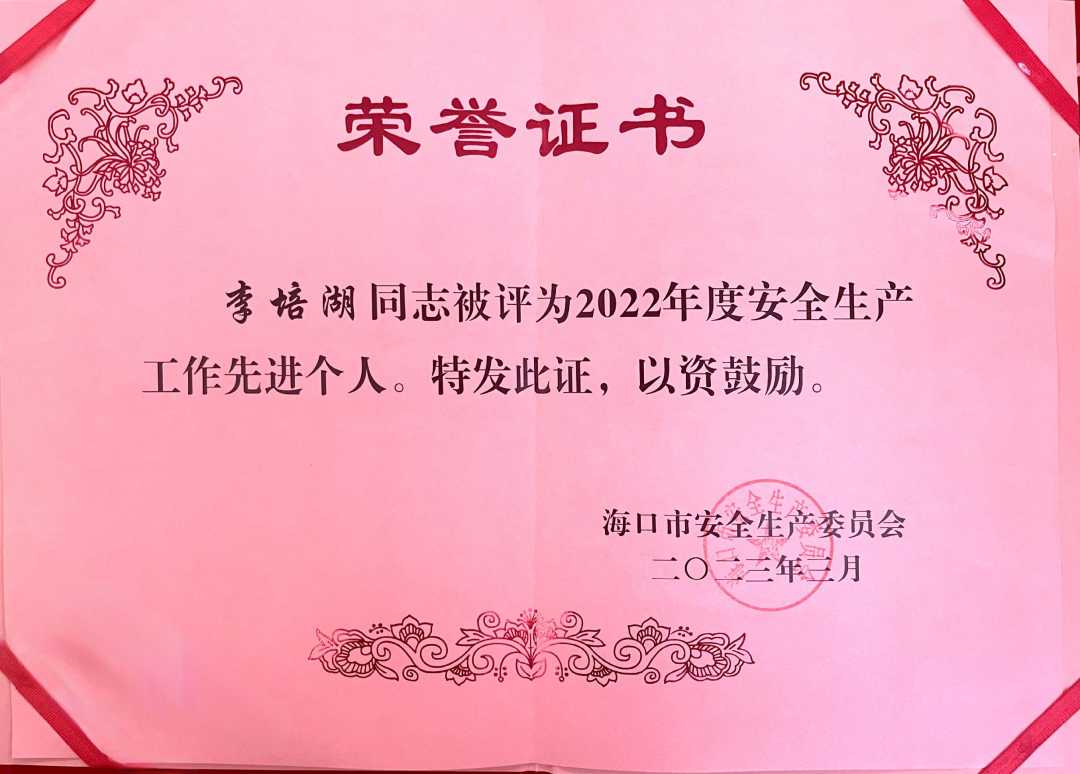 近日,海口市安全生产委员会发布了《海口市安全生产委员会关于2022年度安全生产先进单位和个人的通报》,葫芦娃药业集团获评“2022年度安全生产工作先进单位”,海南生产基地副总经理李培湖被评为“2022年度安全生产工作先进个人”。??