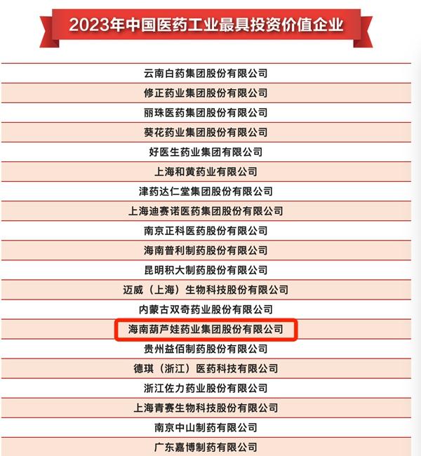 18日,由中国医药工业信息中心主办的第40届全国医药工业信息发布会举行,“2022年中国医药工业百强榜”“2023年中国医药工业最具投资价值企业”“2023年中国医药工业最具成长力企业”“2023年中国医药新锐创新力量”等多个权威榜单重磅发布。葫芦娃药业集团荣登“2023中国医药工业最具投资价值企业”榜单。