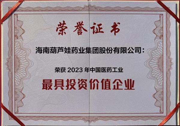 11月17日至19日,2023中国医药工业发展大会在北京召开。大会上,葫芦娃药业集团荣膺“中国医药工业最具投资价值企业”。