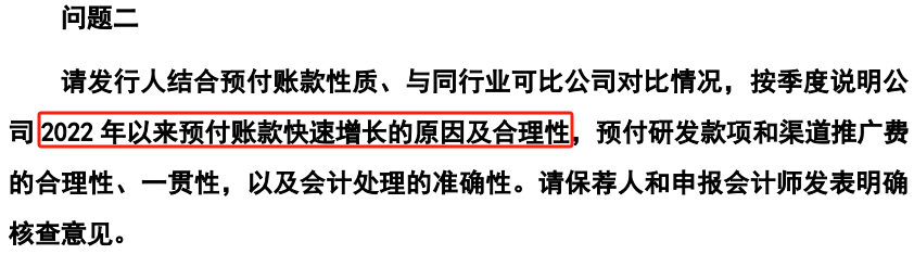 中国基金报记者注意到,葫芦娃的预付款问题实际不止存在于2023年。今年5月21日披露的上市委会议意见落实函就显示,上市委要求公司结合预付账款性质、与同行业可比公司对比情况,按季度说明公司2022年以来预付账款快速增长的原因及合理性,预付研发款项和渠道推广费的合理性、一贯性,以及会计处理的准确性。