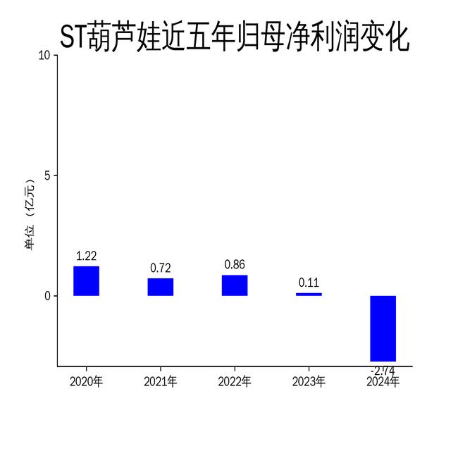 2025年5月1日,ST葫芦娃公司发布了2024年年报。报告显示,公司全年实现营业总收入14.14亿元,同比下降21.26%;归属净利润为-2.74亿元,同比暴跌2629.23%;扣非净利润为-3.25亿元,同比下降2250.82%。尽管公司在儿童用药、品牌建设和研发投入方面持续发力,但销售收入下降和研发费用化核算等因素导致业绩大幅下滑。