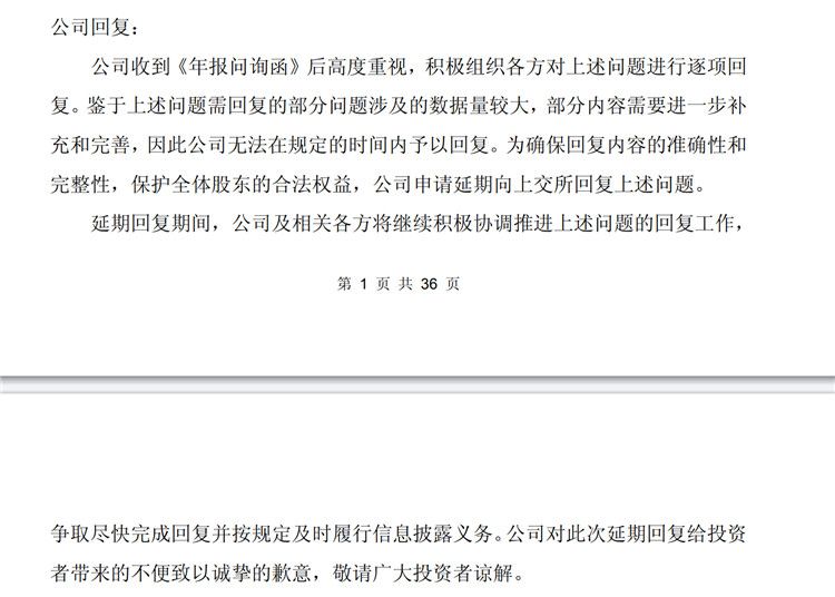 ST葫芦娃给出的相关回复显示,公司收到《年报问询函》后高度重视,积极组织各方对上述问题进行逐项回复。鉴于上述问题需回复的部分问题涉及的数据量较大,部分内容需要进一步补充和完善,因此公司无法在规定的时间内予以回复。为确保回复内容的准确性和完整性,保护全体股东的合法权益,公司申请延期向上交所回复上述问题。