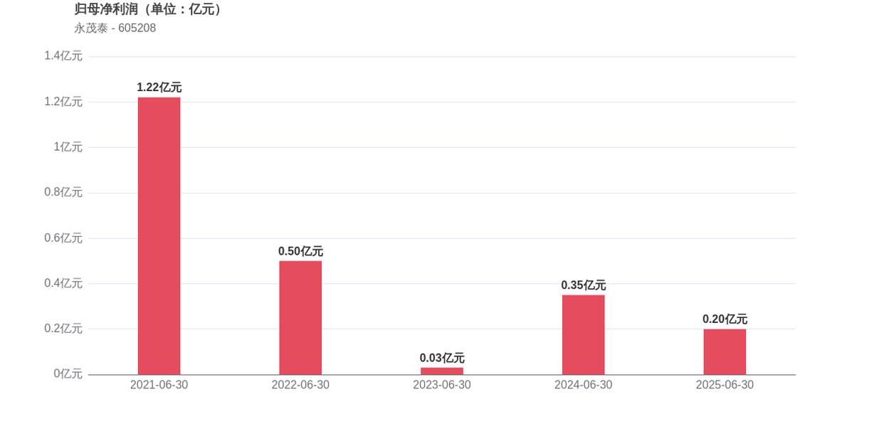 在2025年上半年,永茂泰的经营业绩呈现出收入增长但利润下滑的分化态势。公司实现营业收入26.19亿元,同比增长51.66%,但归母净利润仅为0.20亿元,同比下滑44.27%。分季度来看,二季度归母净利润0.05亿元,环比下降63.85%,盈利能力持续承压。