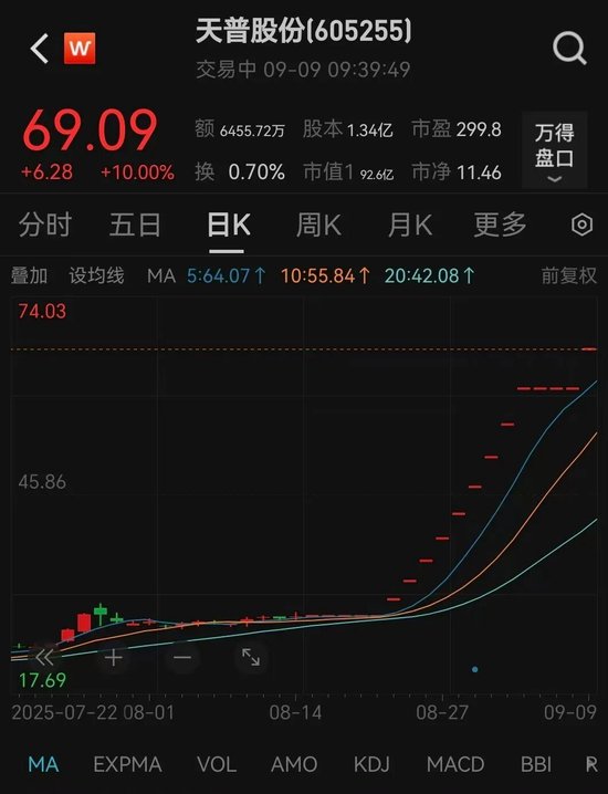 异动个股方面,此前9涨停的天普股份完成核查后复牌,再次“一字”涨停。