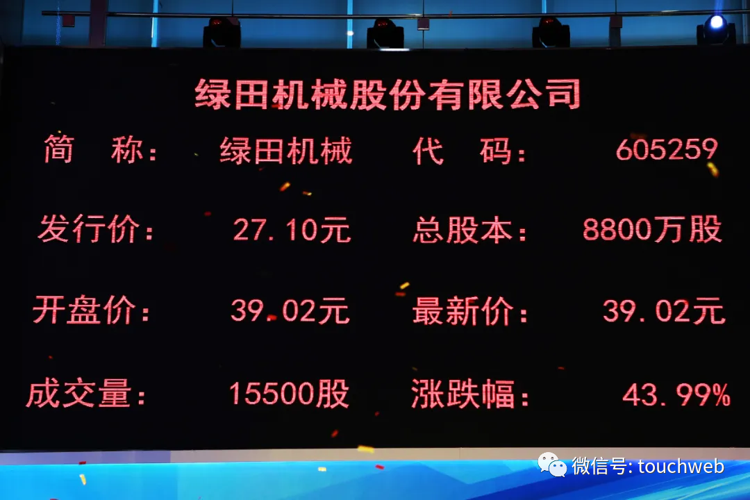 绿田机械股份有限公司(证券代码:605259,简称:“绿田机械”)昨日在上交所上市。