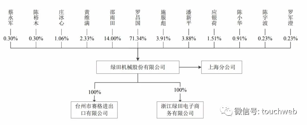 IPO后,罗昌国持股为53.51%,邵雨田持股为10.5%。施服彪持股为2.93%,潘新平持股为2.91%。