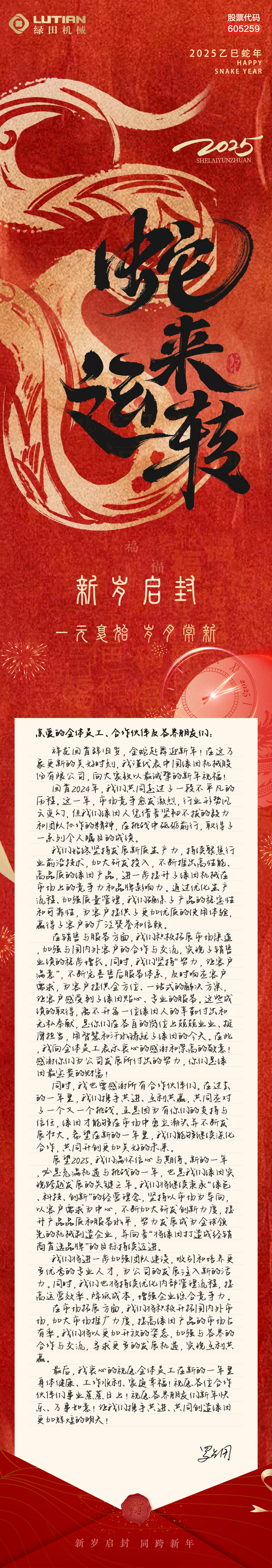 新年致辞 | 绿田机械董事长:挺膺担当 跨越发展
