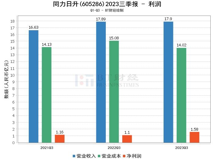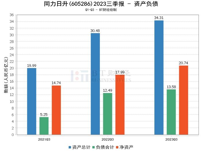 在资产负债方面,同力日升2023年三季度末的总资产为34.31亿元,相比上年度末的29.17亿元增长了17.62%。负债合计13.58亿元,相比上年度末的10.68亿元增长了27.13%。净资产为20.74亿元,相比上年度末的18.49亿元增长了12.22%。资产负债率为39.56%,相比上年度末的36.62%有所上升。