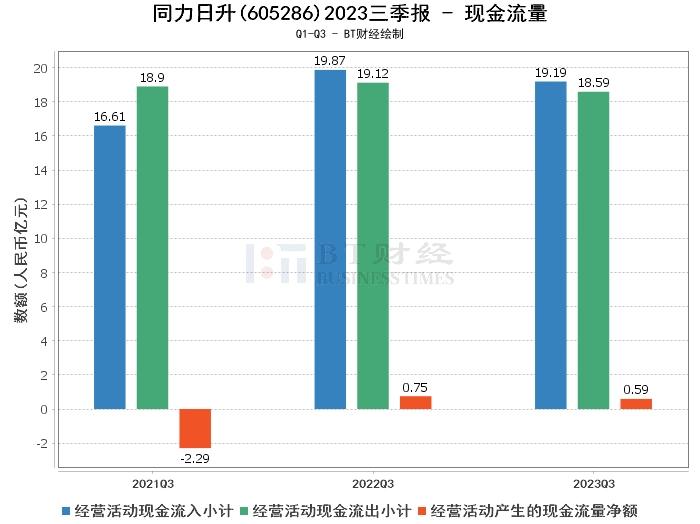 在现金流量方面,同力日升2023年三季度经营活动产生的现金流量净额为5911.25万元,相比上年同期的7472.46万元减少了20.89%。经营活动现金流入小计为19.19亿元,相比上年同期的19.87亿元有所减少。经营活动现金流出小计为18.59亿元,相比上年同期的19.12亿元有所减少。