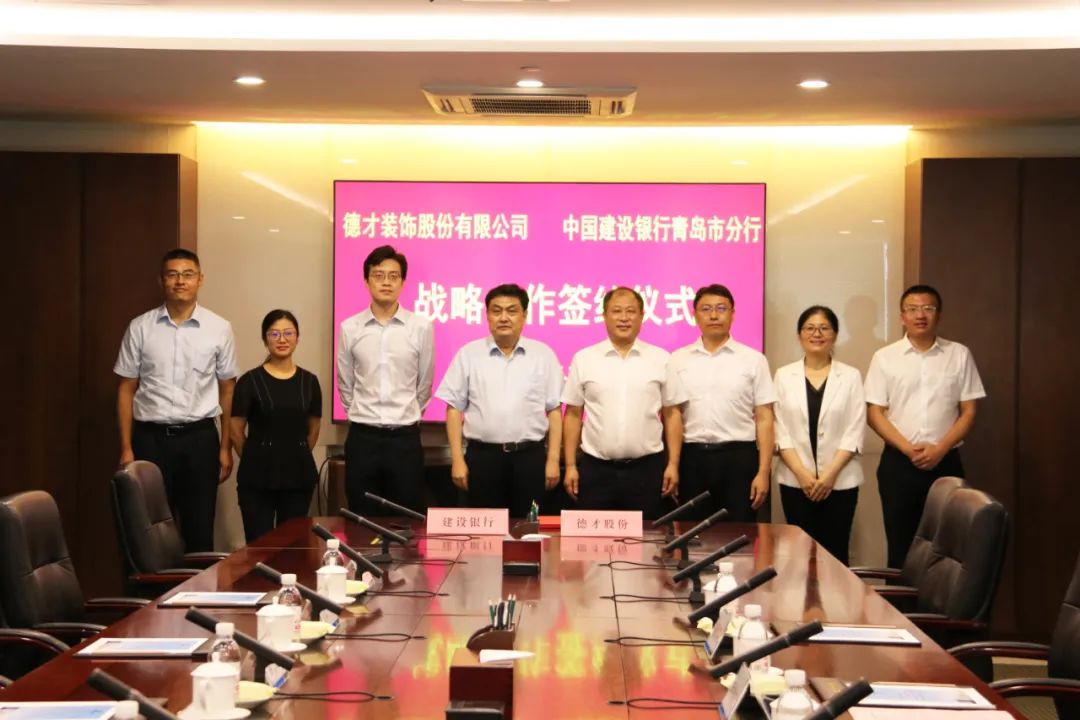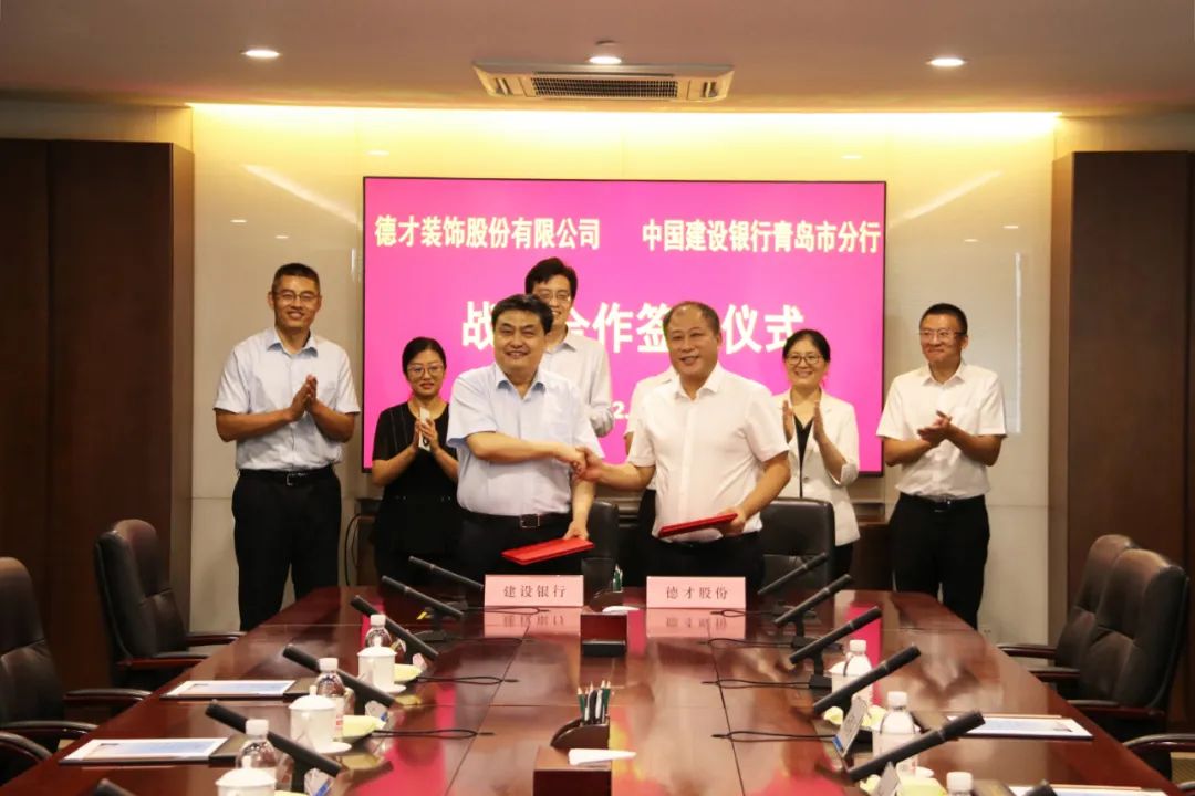 7月28日,德才装饰股份有限公司(以下简称“德才股份”)与中国建设银行股份有限公司青岛市分行(以下简称“建设银行青岛市分行”)战略合作签约仪式成功举行,德才股份董事长叶德才、建设银行青岛市分行行长郝子建出席签约仪式,共商合作、共谋发展、共绘蓝图。