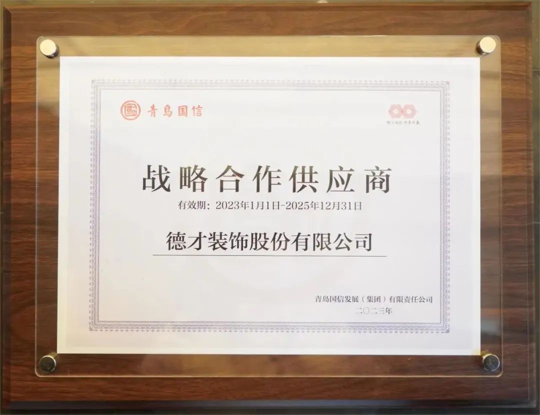 健康可持续的合作关系是德才股份持续高质量发展的关键因素,德才股份将坚持以项目为中心的管理机制,持续优化供应链生态管理,与上下游合作伙伴携手打造负责任的产业链,以自身供应链的高效高质管理确保工程顺畅交底,为终端客户提供高品质匠心产品与全方位精致服务,在与合作伙伴们实现共赢的道路上不断前行。