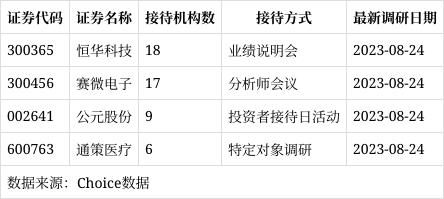 8月25日,恒华科技、赛微电子、公元股份、通策医疗等公司相继发布机构调研公告,具体情况如下表: