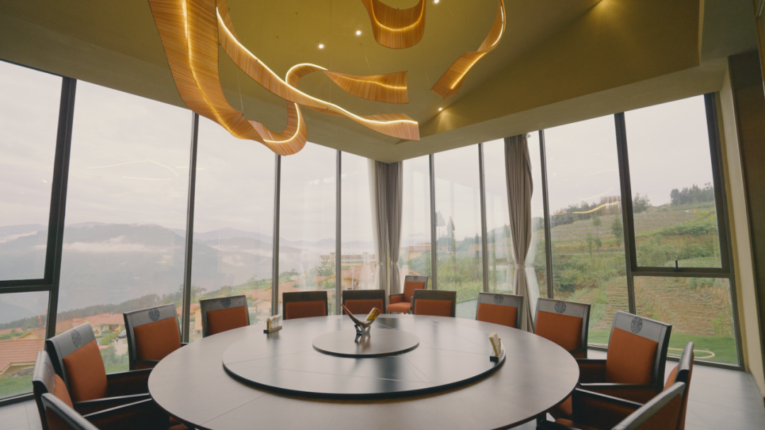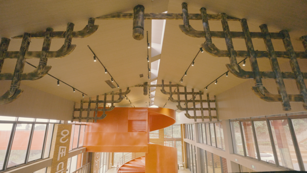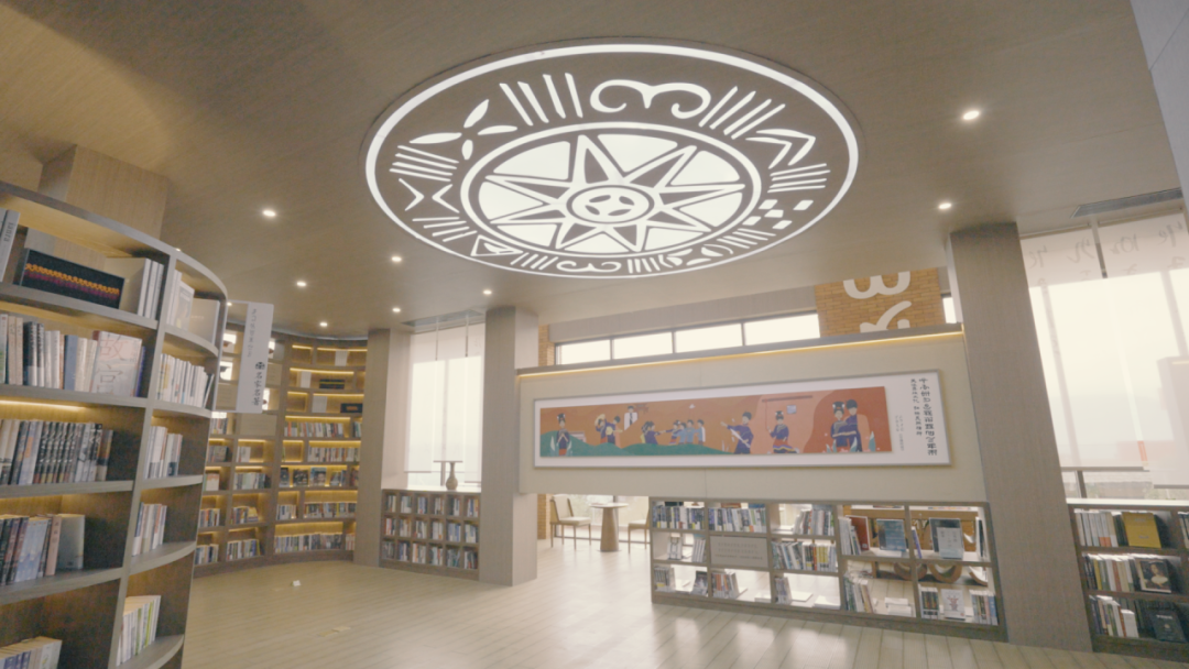 园区设计施工把握民俗灵感,提取彝族传承元素和色彩,将千年彝寨与现代建筑完美结合,浇灌民族团结之花在大山间盛开。餐厅空间宽敞明亮,古色古香,既有现代空间的通透,也用席帘雕栏点缀出民俗浪漫;“彝族起源”展示空间古朴大气,文化廊道流光溢彩,营造古朴优雅阅读展示空间;“彝汉融合”展示空间融汇千年中式与民族建筑美学,线条流畅传承古韵,让特色园区增添历史的厚重与庄严;“脱贫攻坚”展示空间攫取高端文旅体验现代元素糅进彝寨建筑之中,打造民族古建筑的现代高端沉浸体验。