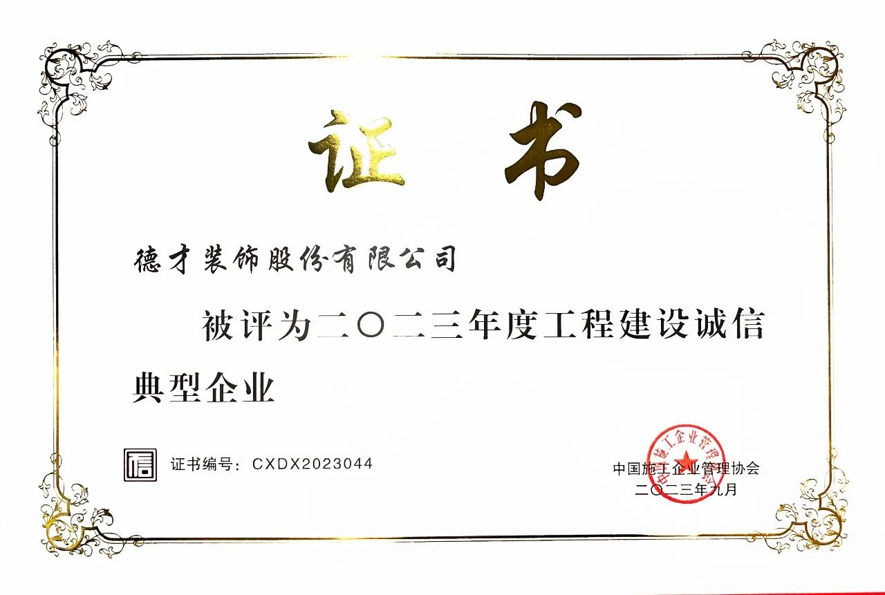 11月14日至15日,由中国施工企业管理协会举办的2023年工程建设行业诚信发展大会暨经济形势分析会在广州召开,德才股份荣获“2023年度工程建设诚信典型企业”荣誉。