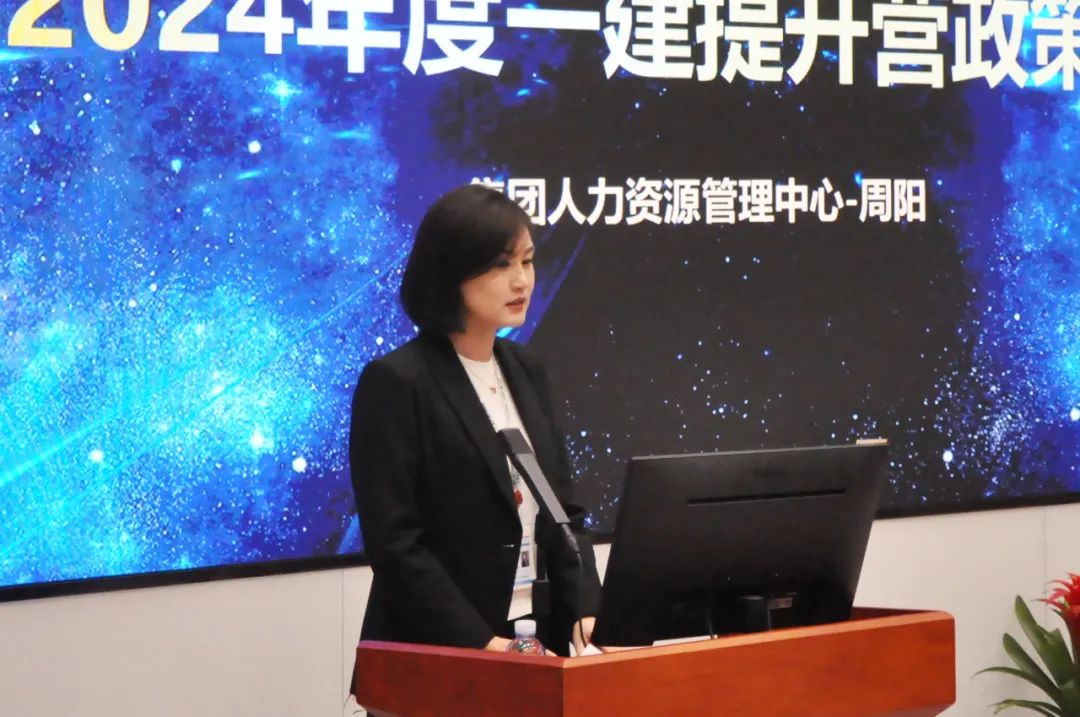 本次大会为2024年一建提升营“营长”及导师颁发聘书,并邀请了2023及2024届学员代表上台发表学习感言。“营长”蔡玉曼为学员深入解读了行业发展政策与要求,明晰提升计划及目标。集团人力资源管理中心副总经理周阳在会上对提升营的奖励政策进行解读。