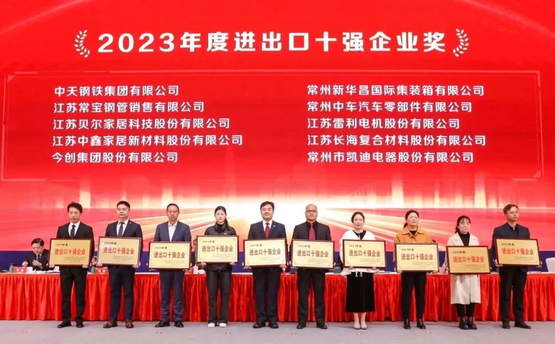 会议现场表彰了2023年度常州经开区“纳税大户”和“优秀企业”。常州市凯迪电器股份有限公司荣膺“2023年度纳税大户银奖”及“2023年度进出口十强企业”。