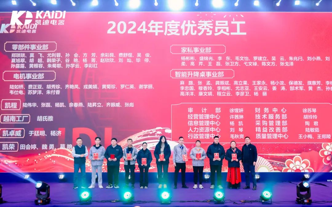 本次年会上,最激动人心的时刻莫过于优秀表彰环节。2024年度优秀员工、2024年度优秀班组长、2024年度优秀管理者、2024年度优秀团队众多奖项纷纷揭晓,激励着在场的每一位同事。