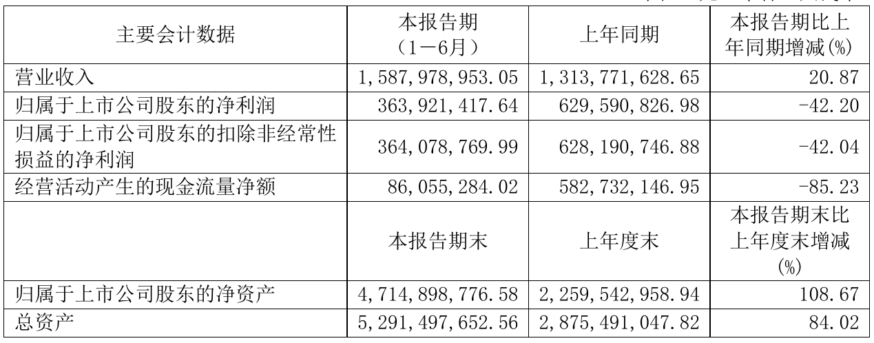 8月16日,神农集团(605296)近日发布2021年半年度报告,报告期内营业收入1,587,978,953.05元,同比增加20.87%;净利363,921,417.64元,同比净利减少42.20%。