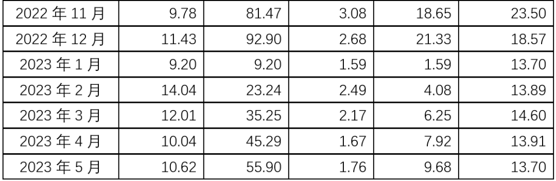 2023年1-5月,公司共销售生猪55.90万头(其中商品猪54.81万头),销售收入9.68亿元。其中向集团内部屠宰企业销售生猪12.98万头。
