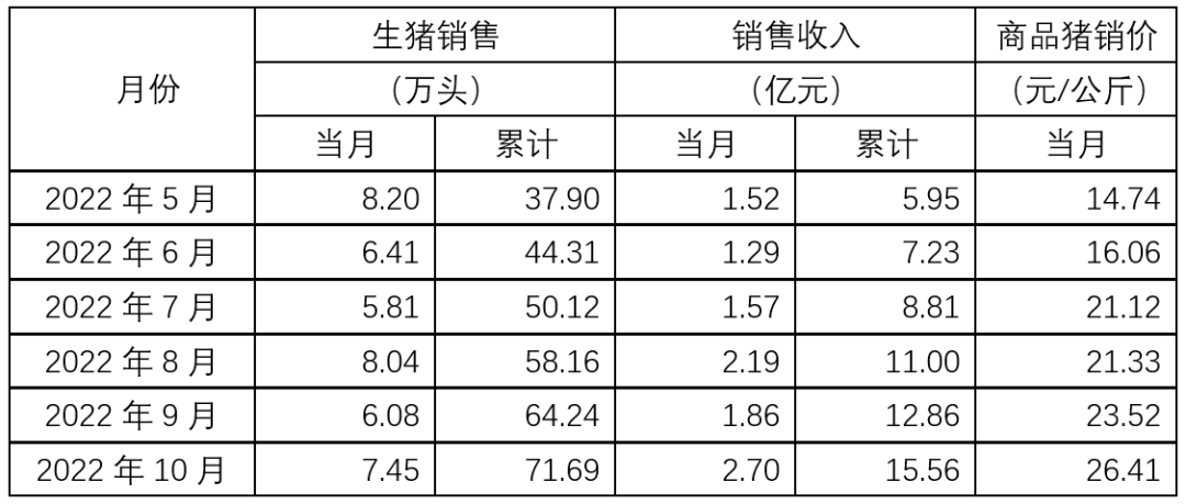 2023年5月份,公司销售生猪10.62万头(其中商品猪销售10.42万头),销售收入1.76亿元。其中向集团内部屠宰企业销售生猪3.30万头。