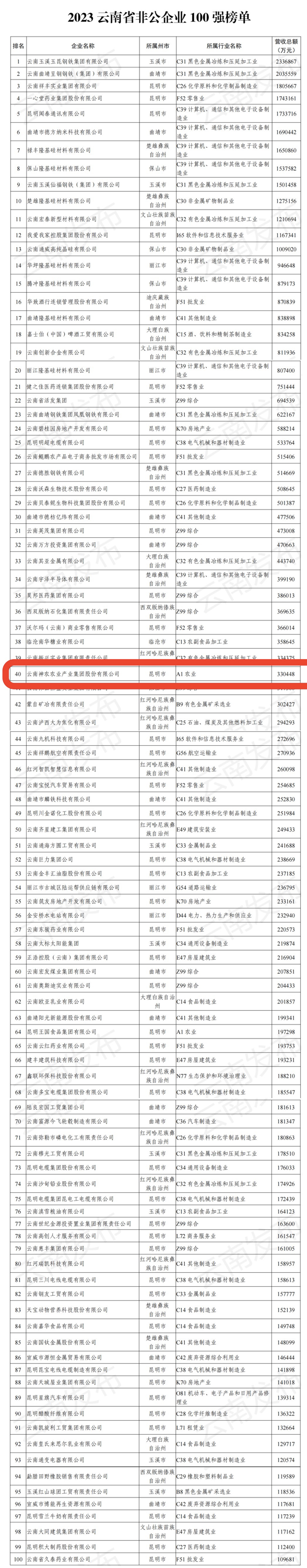 9月19日,2023云南省非公企业百强发布会在昆明海埂会堂召开,神农集团荣登上榜。在公示的《2023年云南省非公企业100强》名单中,神农集团以年营收总额:330448万元,排名第40位。