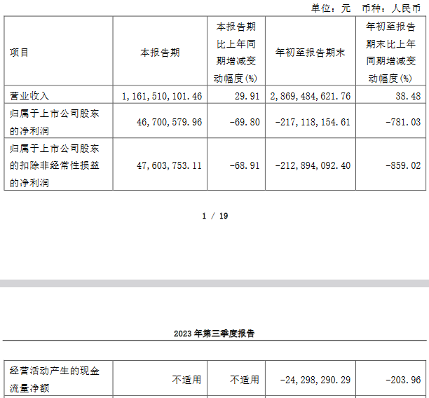 第三季度,公司营业收入11.62亿元,同比增长29.91%;归属于上市公司股东的净利润4670.06万元,同比下降69.80%;归属于上市公司股东的扣除非经常性损益的净利润4760.38万元,同比下降68.91%。