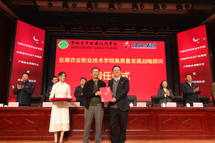 为推动产教协同创新,寻求校企合作共赢、共谋发展的良好局面,推进人才与就业有机联动,12月18日,云南农业职业技术学院与云南神农农业产业集团股份有限公司(以下简称公司)产教融合捐赠仪式暨神农班开班仪式在小哨校区蚕桑礼堂举行。