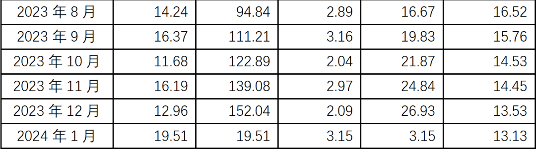 2024年1月养殖业务主要经营数据