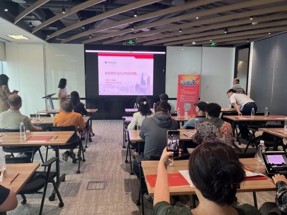 参观及试吃环节结束后,各位投资者移步至会议室,来自中银证券总部研究部的资深行业分析师邓天娇女士为在场投资者介绍了食品饮料行业的行业分析及投资策略,使得投资者对于食品饮料行业的发展情况和近期热点有了进一步认识。