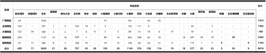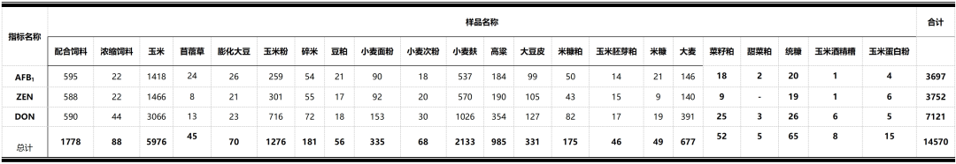 表1:神农集团—2024年霉菌毒素样品信息统计表(单位:个)
