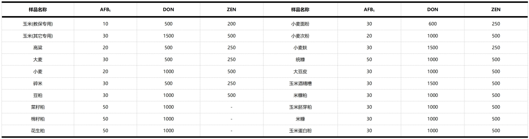 表3:神农集团—霉菌毒素最高限量标准(μg/kg)