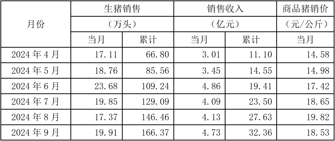 (一)公司目前主营业务包括饲料加工、生猪养殖、生猪屠宰、肉制品深加工等业务,上述销售情况只代表公司生猪养殖板块中活体销售情况,饲料加工、生猪屠宰、肉制品深加工等其他业务板块的经营情况不包括在内,请投资者注意投资风险。