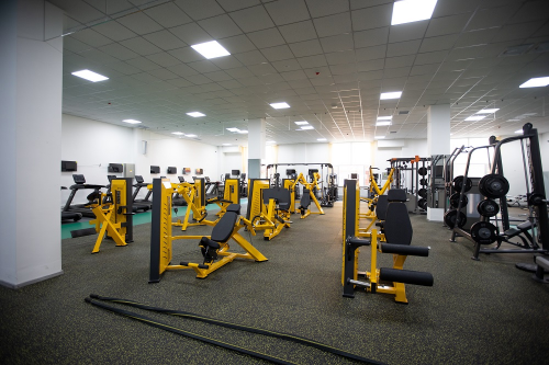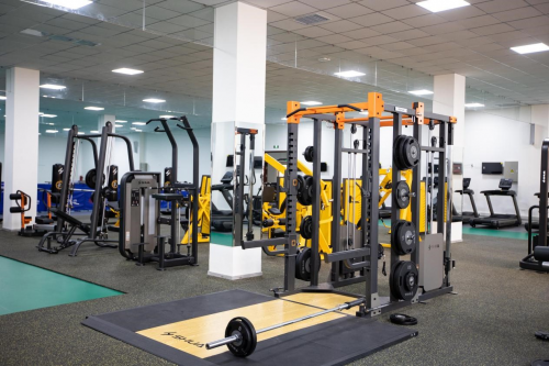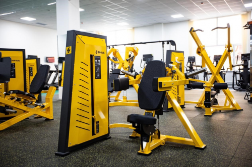 而在力量训练区,配置了力量器材以及框架训练器材。值得一提的是,舒华78系列力量器械,黄色的外观造型,极具张力的X造型主架设,创新采用3D衔接结构,在工业设计上更具力量感的同时满足产品功能性,让力量训练更科学有效。