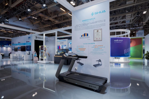 在本次博览会中,舒华体育携经典V10商用跑步机亮相,呈现创新科技加载下的舒适畅跑体验。在智能方面,舒华?V10跑步机配有蓝牙心率手表,可智能采集心率,搭配舒华运动APP使用,还能同步获取运动数据。在北京2022年冬奥会中,V10跑步机也曾入驻冬奥村健身中心,为运动员们提供训练支持。