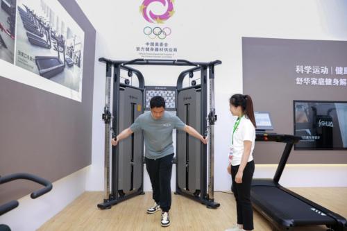 在舒华展区可以看到,作为索契冬奥会和里约奥运会“中国之家”指定训练器械,已累计为十万多个用户及家庭带来健康的销冠产品——X5 PRO豪华智能跑步机2022全新升级款,搭载21.5英寸交互大屏,集多种运动模式、科学运动指导课程、娱乐系统的全新跑步机系统V3.0,支持系统在线升级,极大提升用户交互体验。